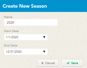 If the season does not currently exist, click the + Season button to create one. By default the start and end date match the calendar year. |